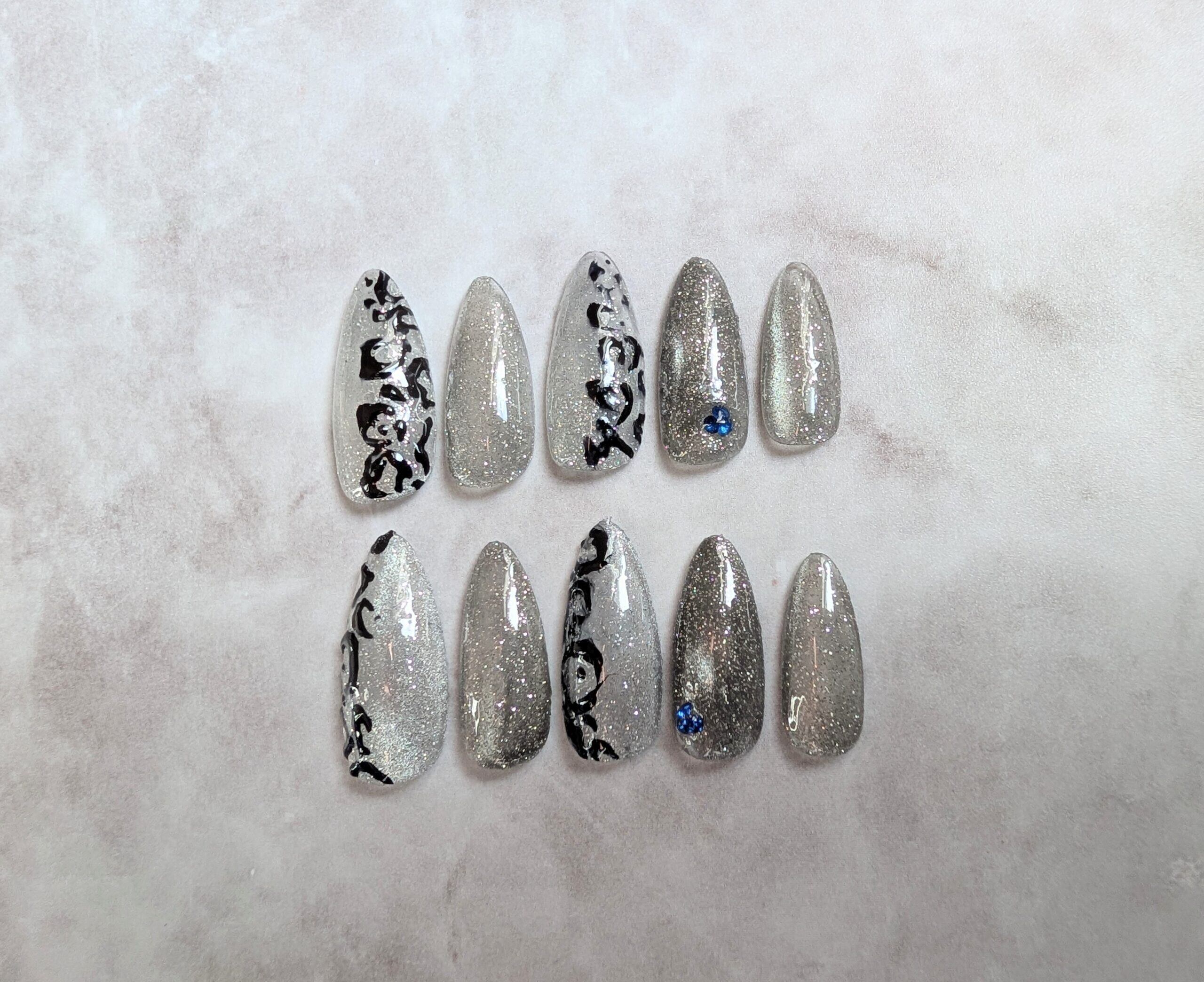 Lame flash series FM1 を使用した一点物ネイルチップ。